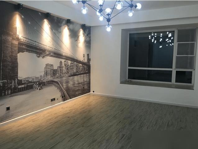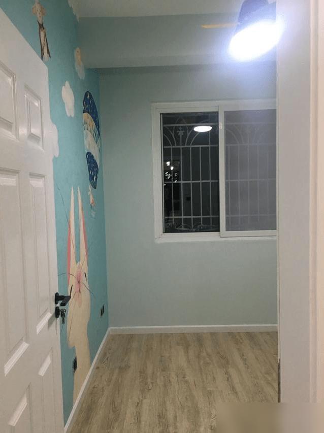 硬装刚收尾,家具还没进场,可那股子温馨劲儿已经扑出来了——客厅的灯够抢镜,全房地板看着就舒服;餐厅简简单单却有烟火气;厨房带个小阳台,以后晾个菜晒个袜子都方便;卧室没做复杂吊顶,反而显得敞亮,飘窗配金刚纱窗,实用又安全;儿童房的壁画萌得人心里发软,这小娃娃住进来肯定乐开花。